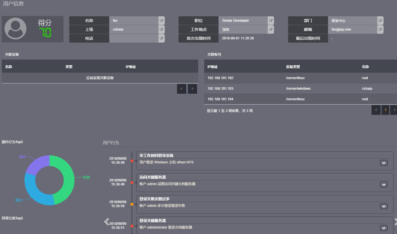 • 根据用户行为轨迹可以钻取相关安全事件,寻找和固定相关证据